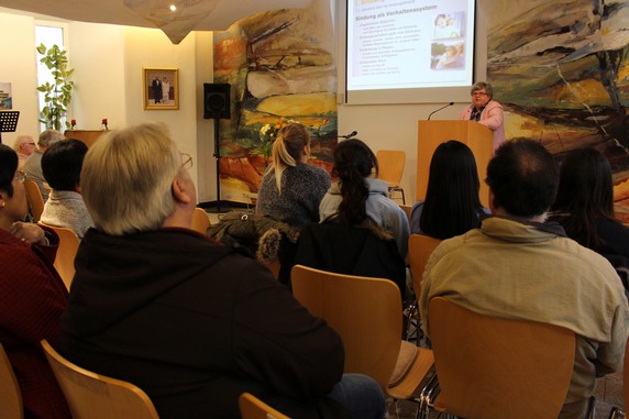 Da die Referentin, Hildegard Piepenburg, Mutter von vier Kindern ist und ein B.Sc. Psychologiestudium absolviert hat, konnte sie sowohl aus persönlicher Erfahrung als auch aus ihrem theoretischen Wissen reichlich schöpfen und ein sehr umfassendes Wissen vermitteln, das sie in drei Themenkreisen - 1) Bindungsforschung, 2) Gehirn- und Emotionsforschung und 3) Was ist Liebe? - präsentierte.