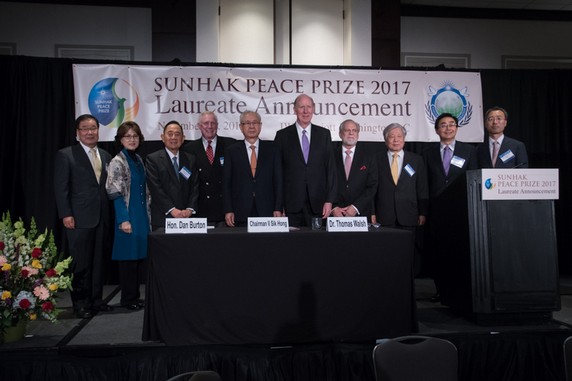 „Wir sind auf globaler Ebene mit der größten Zahl an Vertriebenen und Menschen auf der Flucht seit dem zweiten Weltkrieg konfrontiert. Daher müssen wir transnationale Bemühungen verstärken, die das Wohl der gesamten Menschheit im Blick haben. Es war diese äußerst kritische Situation, die das Sunhak-Friedenspreis-Komitee veranlasste, den Fokus für 2017 auf die globale Flüchtlingskrise zu legen“, sagte Il-sik Hong, früherer Präsident der Korea Universität und Vorsitzender des in Seoul ansässigen Sunhak-Preis-Auswahlkomitees bei der Bekanntgabe der beiden Preisträger in Washington DC.
